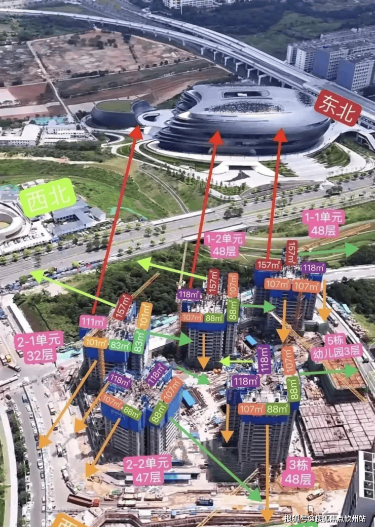 满京华金硕悦府,由满京华集团打造,总占地面积约2.61万㎡,总建筑面积约21.8万㎡,计容建筑面积约15.53万㎡,容积率5.95,绿化率30.01%,共由5栋32-48层高的住宅组成,其中1栋1/2单元住宅48F,2栋1单元住宅32F,2栋2单元住宅47F,3栋住宅48F,4栋是1所幼儿园,还配建有社区菜市场。