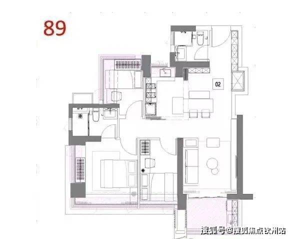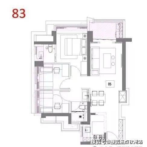 竖厅设计,92%得房率(含赠送),西北朝向阳台,预留冰箱位,主卫干湿分离。