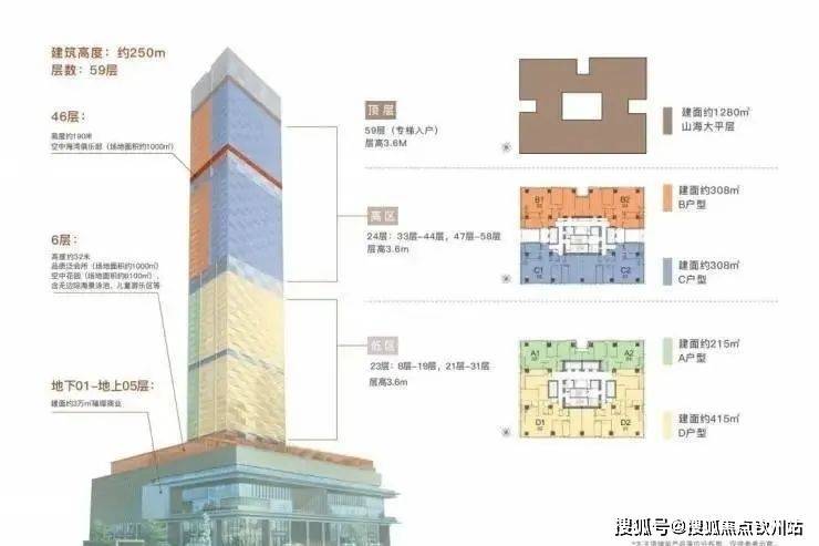 楼层高:59层(低区8-31层,高区33-58层避难层20/32层)