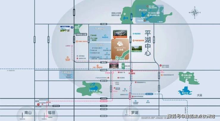 平湖,深圳几何地理中心,拥“1枢纽+2城际+3地铁+4快速路”的立体枢纽级交通。