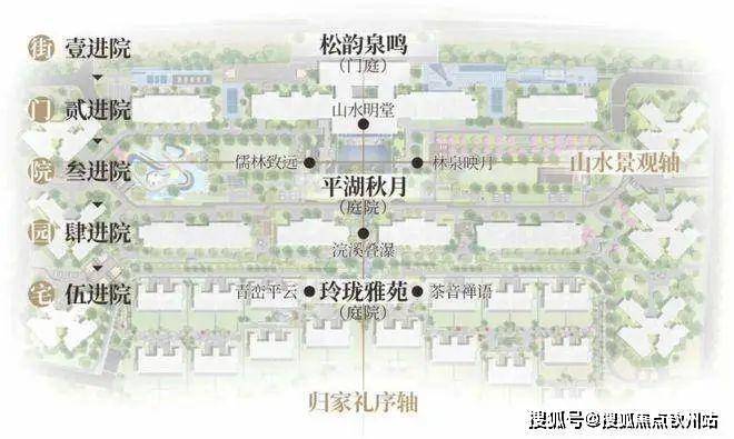 ▫汲取岭南四大名园精华,布局两轴三庭,五进六园,尽显归家礼序。