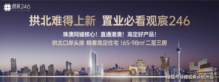 “观宸246”位居拱北口岸头排,珠澳同城核心板块,城市中心+口岸物业双极加持,近10年来距离拱北口岸、港珠澳大桥口岸最近的纯住新盘,左手澳门世界级休闲娱乐配套,右手拱北城市烟火生活,坐享醇熟配套,畅享港珠澳三城无界生活。
