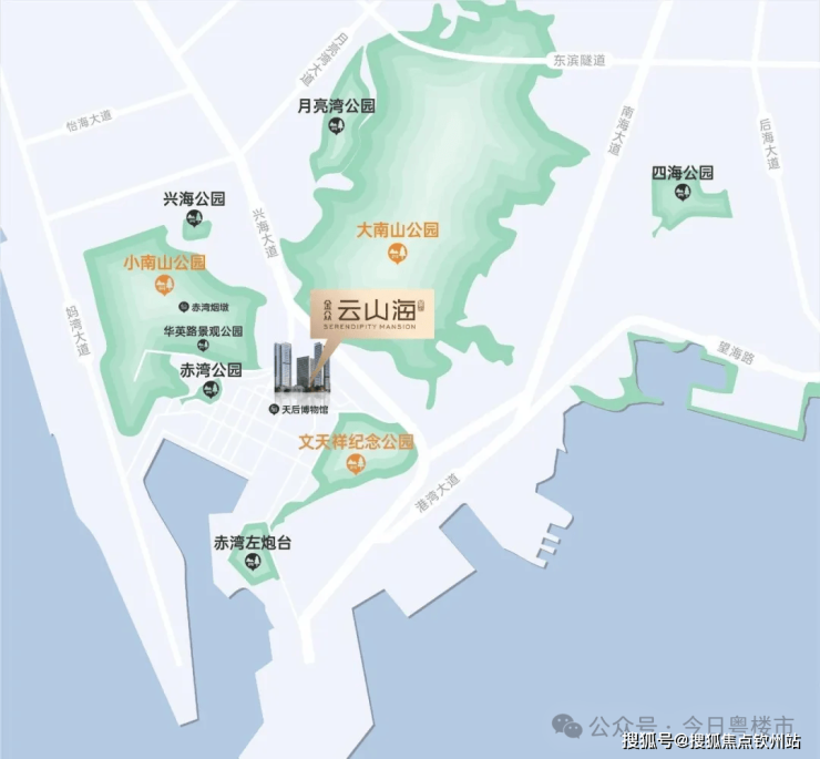 背靠大小南山,周边还有文天祥公园、天后博物馆、赤湾公园、华英路景观公园、月亮湾公园、歌剧院国际艺术文化区(在建)等生态、休闲资源。