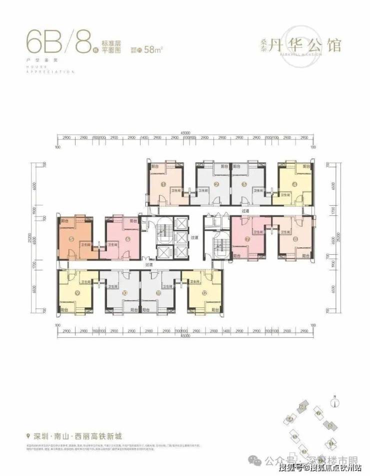 丹华公馆推售约690户,产品面积约58-101㎡3房,层高58㎡层高3.9米,101㎡层高2.95米高楼层58平36层、101平45层,使用率约80%梯户比:四梯七户、四梯十二户,单价:约6.6万起,总价区间:370-750万,交楼标准:精装,交楼时间2025年5月,车位数2000个,物业费5.9元,发展商深圳市桑泰房地产开发有限公司