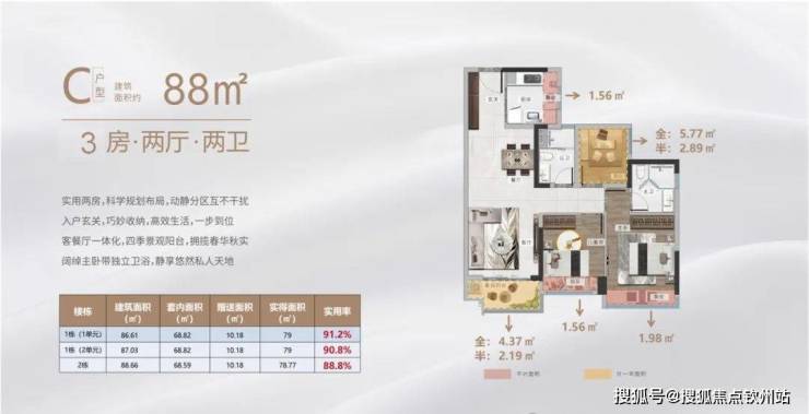 新加推1#号楼户型图鉴赏(79、89、99㎡(与4#号楼户型结构相同)