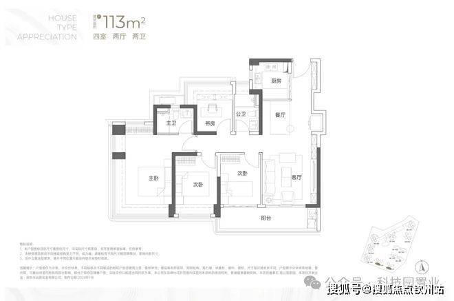 建面约113㎡4房2卫