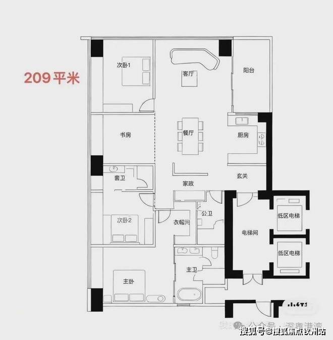 项目容积率7.59,限高250米,规划5栋超高层住宅,采用全玻璃幕墙设计,实用率高达92%以上,主力户型200㎡以上大平层。