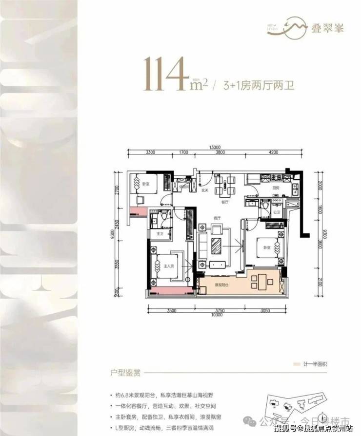 城市中心罕见2.0容积率,纯粹豪宅规划尺度,营造疏阔的建筑空间。叠翠峯南北坐卧,藏风聚气,于半山高度,360°全无遮挡,推窗即远眺城市与山,前后千米无楼间距遮挡,定义半山顶豪物业典范。