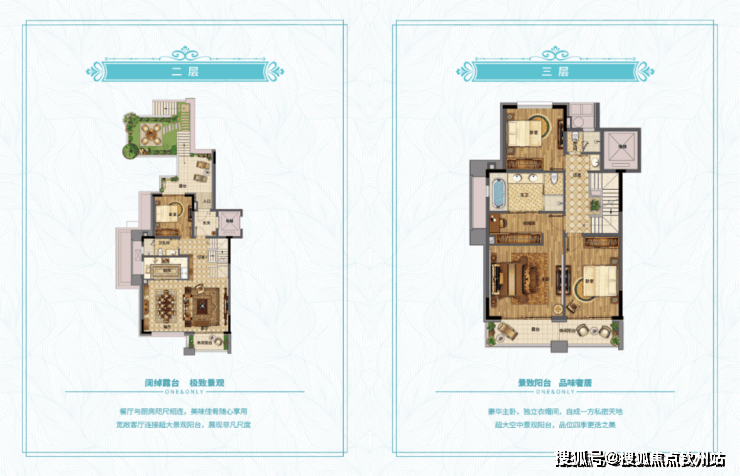 中叠为独门独户,通过电梯和私密露台入户,带来全方位的私密性和尊崇感