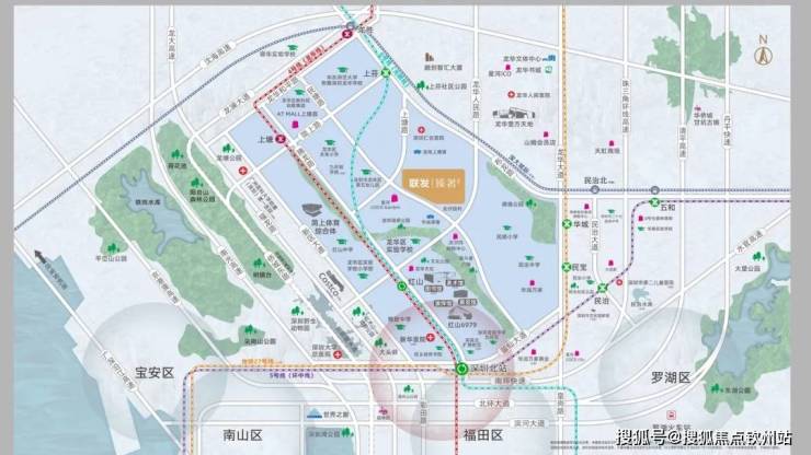 项目位于龙华“第五大道"民塘路,直连深圳最大的铁路权纽--深圳北站,串联深圳北CBD,连通龙胜-红山人口密度最大的中央生活区。新区大道、福龙路、布龙路三条主干道快速通达深圳各区