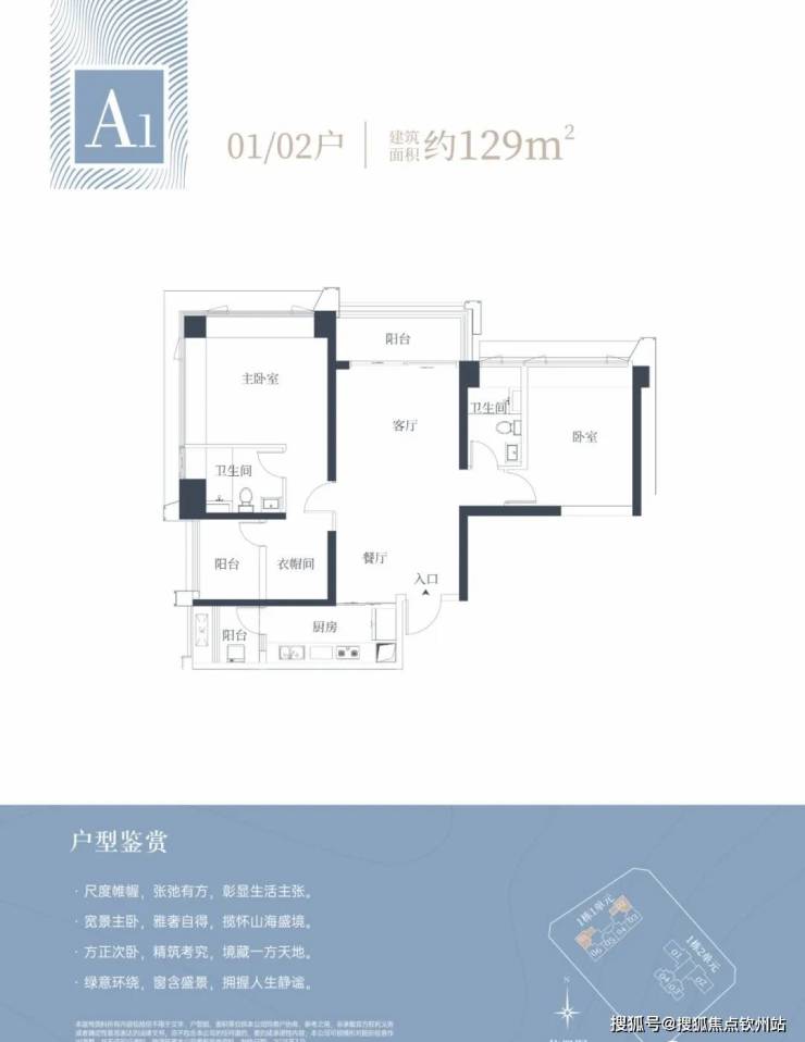 🔹1栋一单元A1、A2户型:面积约为129㎡;