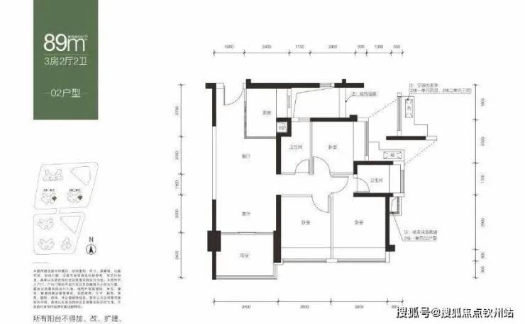83㎡-3房2厅2卫,设计的是竖厅南北通透格局,客厅3.3米开间,3个卧室分别是3米/2.6米/2.4米的宽度,主卧南北通透设计,L型厨房,得房率:75.42%(不含赠送),01户型是西北朝向,07户型是东北朝向。89㎡-3房2厅2卫,设计的是经典竖厅格局,客厅3.4米开间,三开间朝南,3个卧室分别是3米/2.8米/2.4米的宽度,L型厨房,得房率:75.42%(不含赠送),02-03户型是东南朝向,05.06户型是西南朝向。