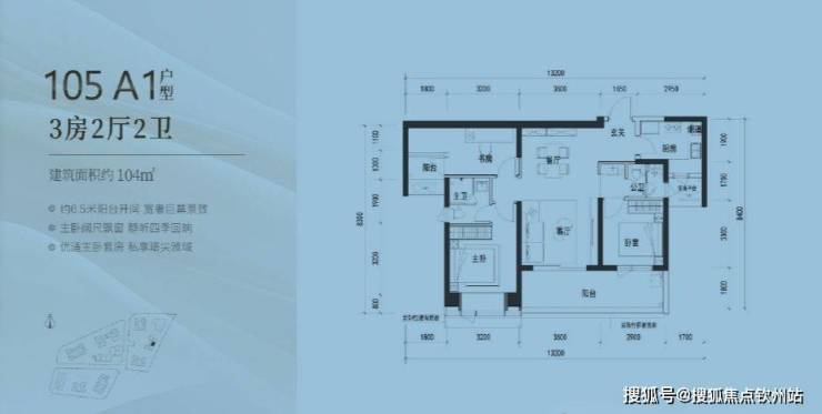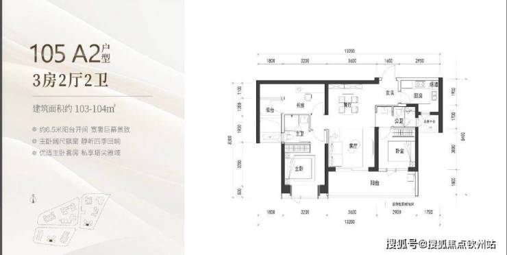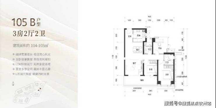 建面约105㎡的3房2厅2卫