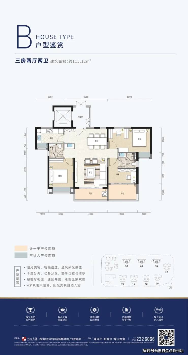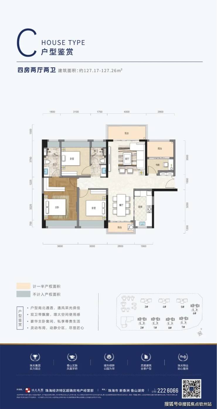 5栋分布两个户型,面积分别为115㎡、143㎡,均为南向。