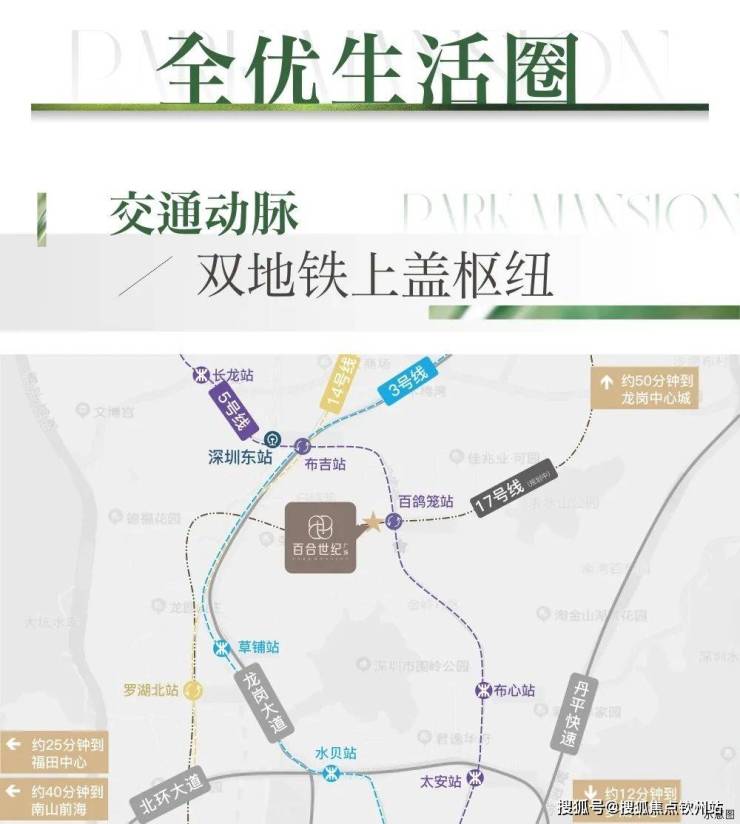 • 地铁:双地铁上盖,5号线百鸽笼站步行100米即达,17号线罗岗站(规划中)约450米交汇,1站换乘3/14号线,4站直达福田CBD,7站速抵深圳北站。