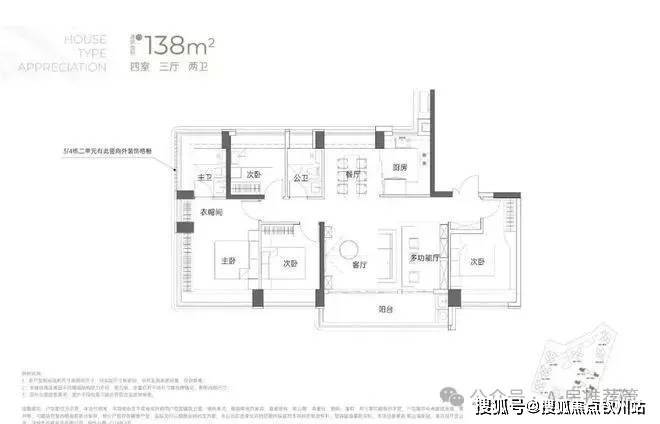 建面约138㎡4房3厅2卫
