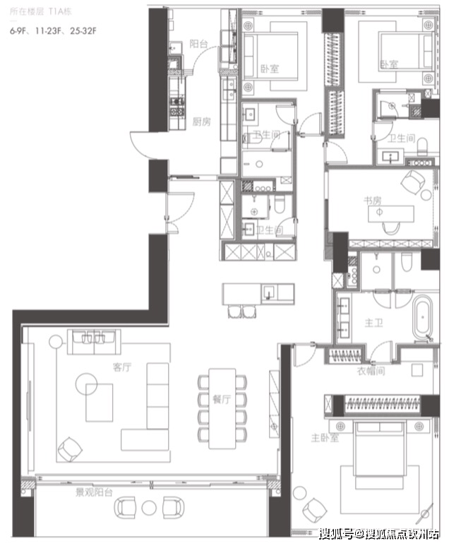 01户型 西端户 约350㎡ 四房两厅四卫
