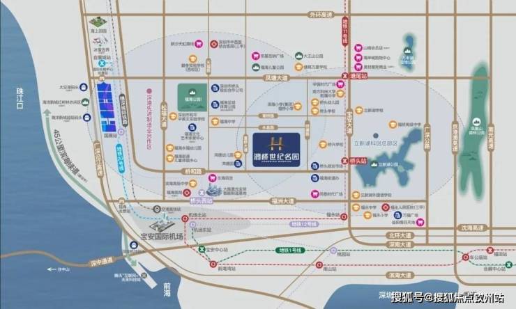 项目距离11号地铁线“桥头站”约600米,1站到福永可换乘12号线,3站到机场,5站到宝安,6站到南山前海湾,11站到南山高新园,12号地铁线“福海西站”约1.5公里,还有穗莞深城”福海西站“,该线路于2019年12月15日已建成开通运营。