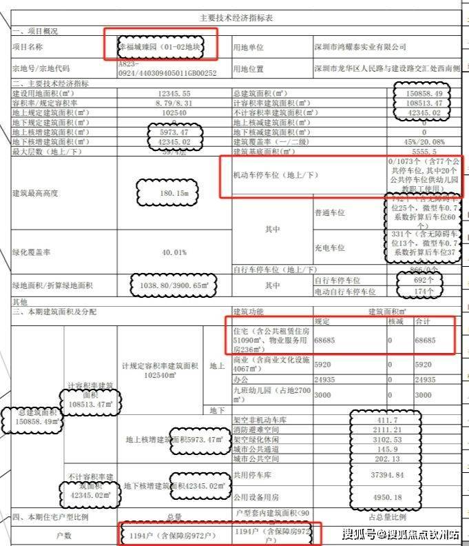 总规划1194户,3栋3梯4户设计,其中包含公租房972套,地下室有4层,规划停车位1073个,其中包含了77个公共停车位。