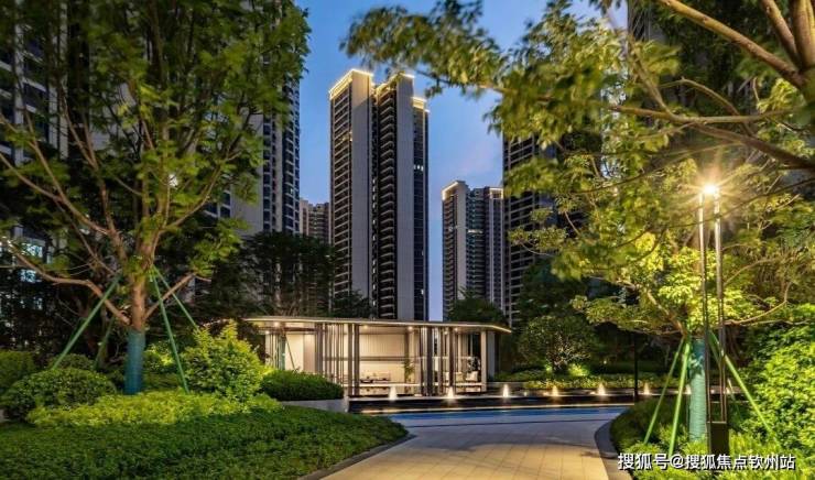 在设计上,引入公建立面元素,打造大气精工、尊贵典雅的标杆立面形象。采用现代精奢风格打造项目景观大门,从景观大门、风雨连廊、园林、架空层、大堂多重细节营造5重归家礼序;