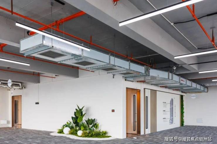同时,项目办公区选取FCU系统,体积小、易安装,由独立的新风管道补送室内新风,独立排风管道抽排部分室内空气,有效过滤PM2.5和大量灰尘,避免细菌、病毒交叉感染的风险,即使不开窗也能保障办公空间全天候的清新空气,每一寸办公场域都成为鲜氧循环的生命体。