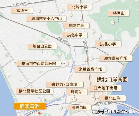 区位优势:项目处于一桥三口岸区域,临近拱北口岸、青茂口岸、跨境工业区口岸以及港珠澳大桥,步行约 1 公里即可从青茂口岸、拱北口岸前往澳门,粤港澳同城生活便捷。
