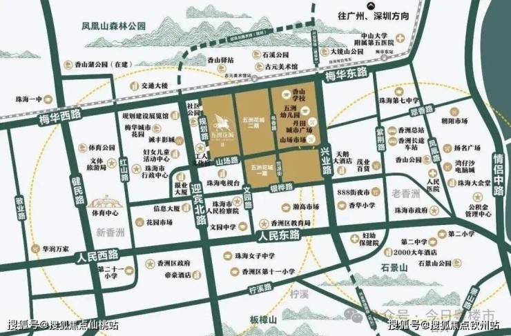 1. 地段优势:位于珠海主城香洲区,毗邻香山湖公园,周边配套成熟(商业、学校、医疗等资源丰富),交通便利(临近主干道),兼具城市繁华与居住便利性。