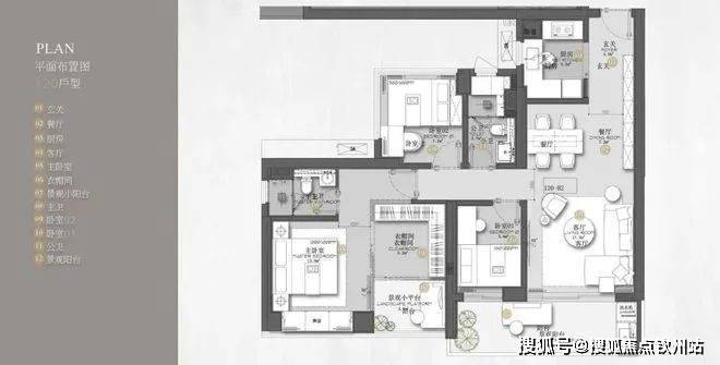 建面约120㎡的3+1房2厅2卫,