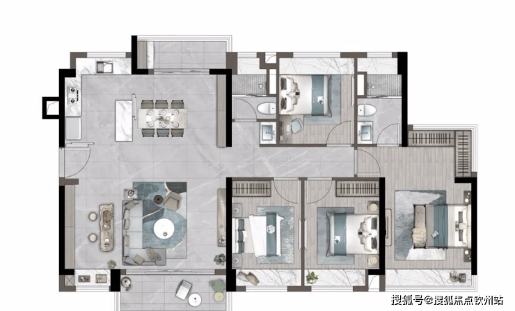 「建筑面积约98㎡丨四房两厅两卫」LDKG一体化阔绰设计南北通透全景双阳台创新可变空间星级主卧臻优套房联动式餐客厅U型大厨房