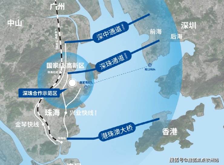 【30分钟前海内圈】珠海是珠江西岸“海陆空轨”交通设施唯一齐全的城市。深中通道、深珠通道双轨驱动下,纳入30分钟前海圈,比深圳更近前海,或将成为前海外溢首站,大湾区黄金内湾的第一红利接收区。