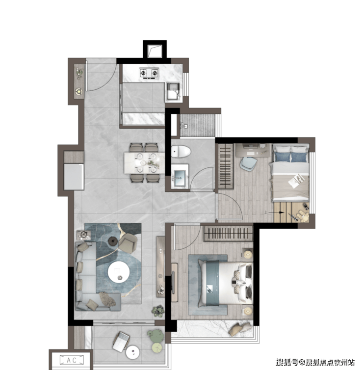 「建筑面积约67㎡丨两房两厅一卫」客厅带南向大阳台主次卧均赠送大飘窗卫生间三分区