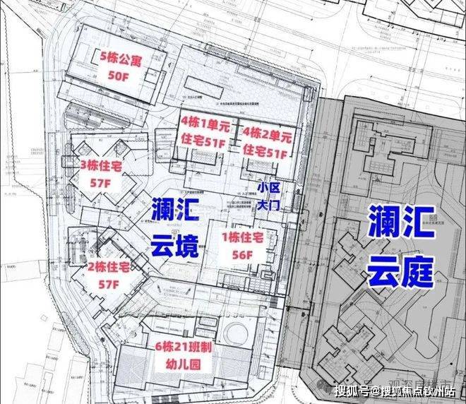合正观澜汇云境,由合正集团公司打造,总占地面积约2.96万㎡,总建筑面积约36.21万㎡,计容建筑面积约26.23万㎡,容积率8.5,绿化率35.09%,共由4栋住宅+1栋酒店+1栋幼儿园,其中1栋住宅56F,2栋/3栋住宅57F,4栋1/2单元住宅51F,5栋酒店50F,6栋是1所21班制幼儿园。