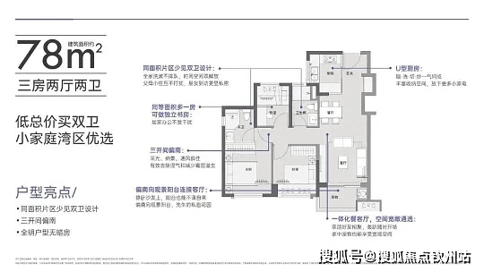 79㎡三房两厅一卫:总价约 111-126 万,紧凑三房,适配小家庭。