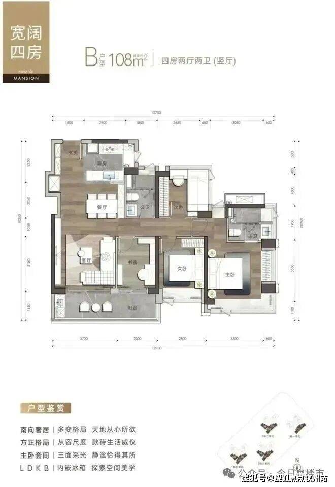 138㎡户型可改造为4+1房,主卧套房设计+6米景观阳台。