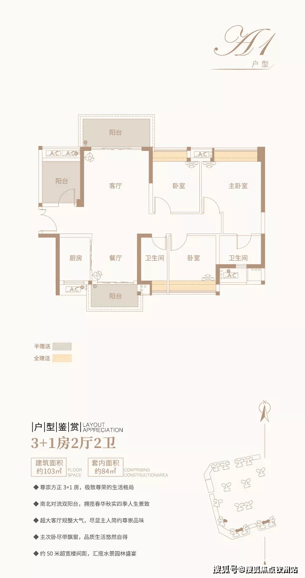 【户型鉴赏】3+1房2厅2卫/约103平方米/南北对流双阳台