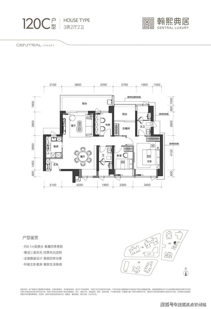 (2)120㎡3+1房2卫:主卧套房超30㎡,可灵活改造空间,适合改善型需求。