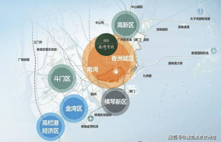 南湾位居珠海地理几何中心,东面一桥之隔即为香洲老城区,南面与横琴粤澳深度合作区、十字门中央商务区一山之隔