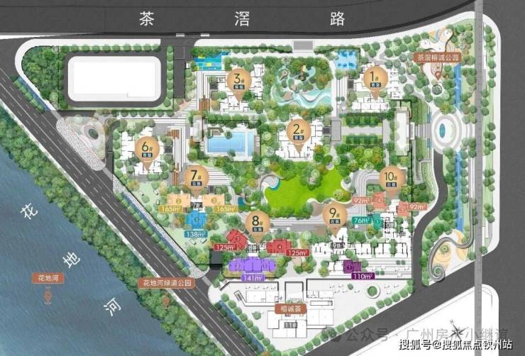 景观:项目直距约30米直达约8.44km一线花地河,传承广钢铁路百年文脉打造铁路文化公园(在建,一期已开放)、茶滘榕诚公园、花地河绿道公园和华南植物园科普园(规划)一江四园景观资源配套