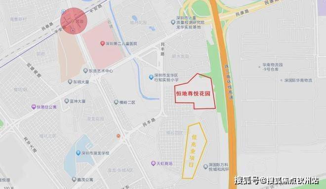 从地理位置上看,恒地尊悦花园位于深圳地铁4号线白石龙站和5号线民治站交汇的三角形区域,民治地铁站步行到项目所在的位置大约需要900米,这也是距离项目最近的地铁站。