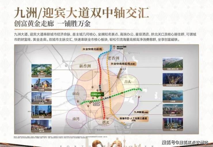 3口岸,咫尺即達拱北、青茂、港珠澳3大口岸,10分鐘澳門;粵港澳大灣區超級交通樞紐。1大橋,3km接駁港澳珠澳大橋,通過港珠澳大橋40分鐘直達香港