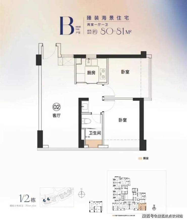 B戶型:80-81㎡,兩房一衛