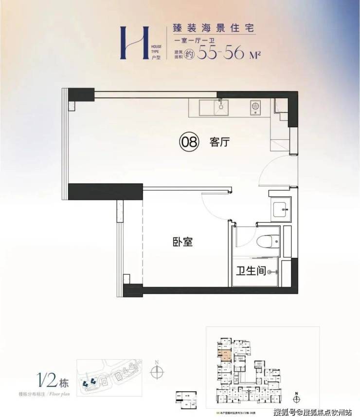 H戶型:55-56㎡,一房