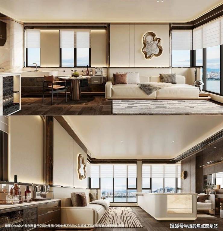 「望海玥」首推公寓389套,高度为35F,户型为36-44-46-60㎡的1-2房,精装交付。