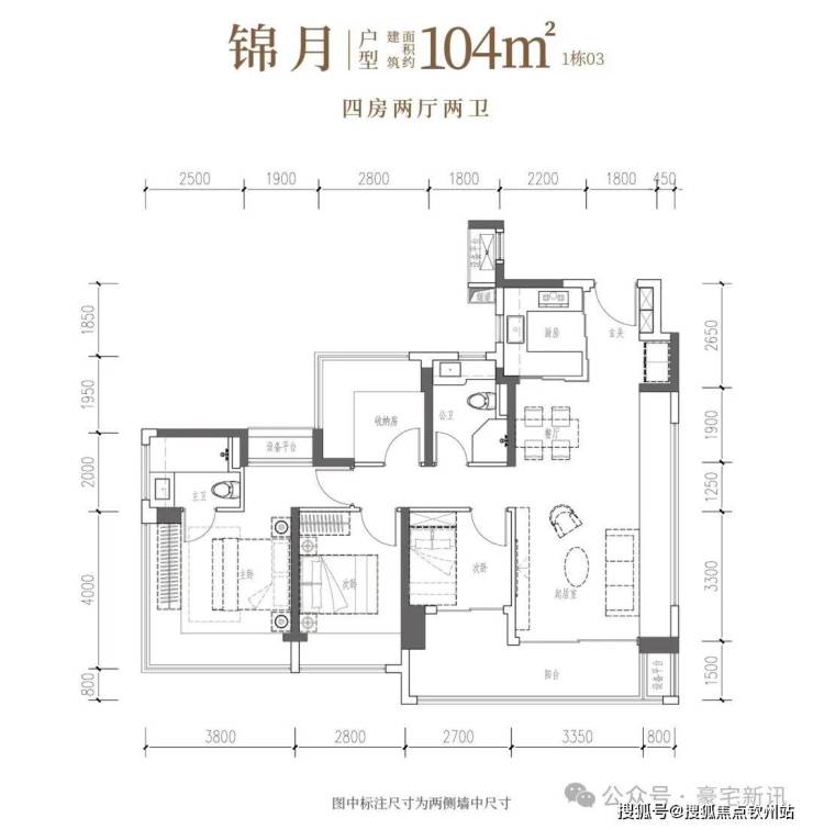 •锦和·约106㎡四房两厅两卫:南向四开间,一线园林景观,自在奢想建面约106㎡宽幕人生,以IMAX光幕揽景,以LDKB方厅聚情,更以转角视野与匠心细节,奢享从容生活。