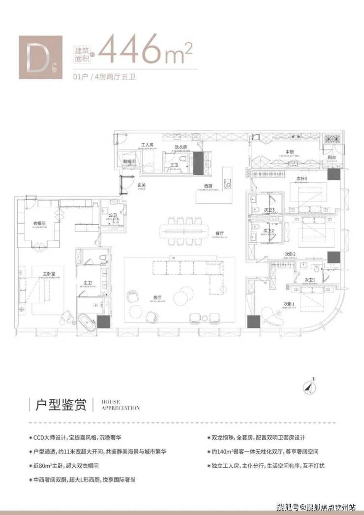 (4)D户型446㎡,折后总价2335--2671万(单价5.2-5.9万元/㎡);