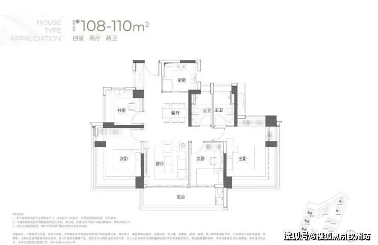 竖庭格局,西南向,基本居住功能与建面约108-110㎡4房2卫一致,但格局不一样,从目前公布的户型图上看,主要是主卧空间有了更大的提升,比如可以放更大一点的衣柜。