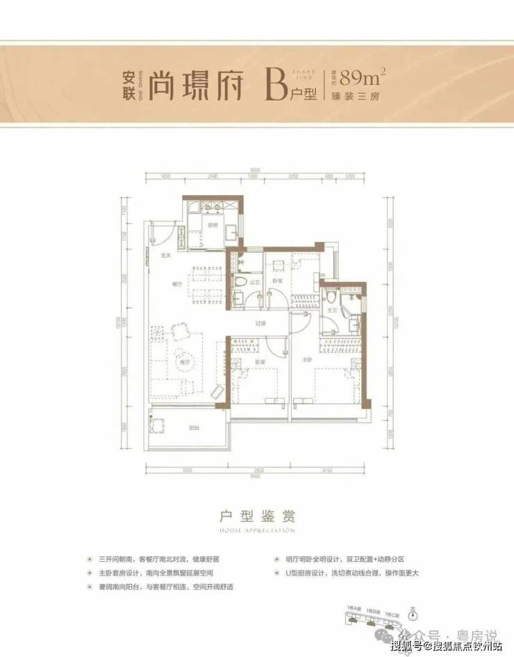 89m²的3房2厅2卫,折后总价339-360万,单价3.8-4.04万