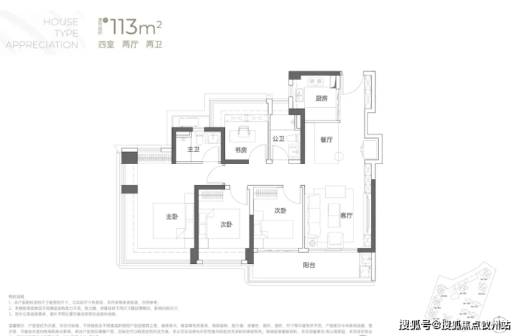 建面约113㎡4房2卫