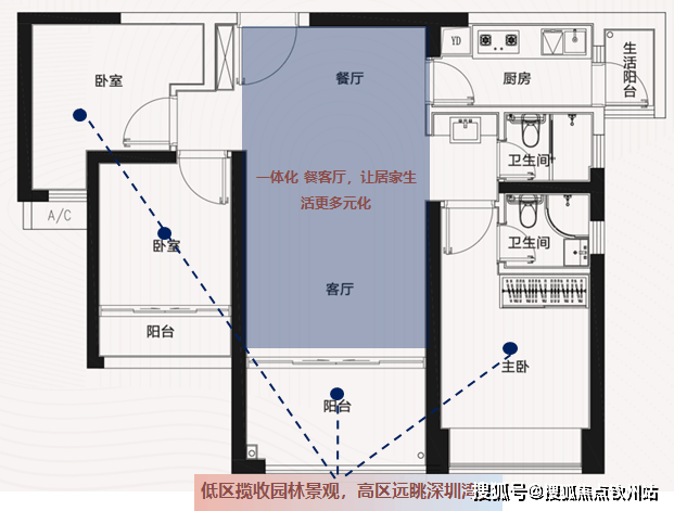 三阳台:前海黄金圈内,唯一在售89㎡三房两卫三阳台,客厅阳台进深2米,堪比140㎡大户型阳台