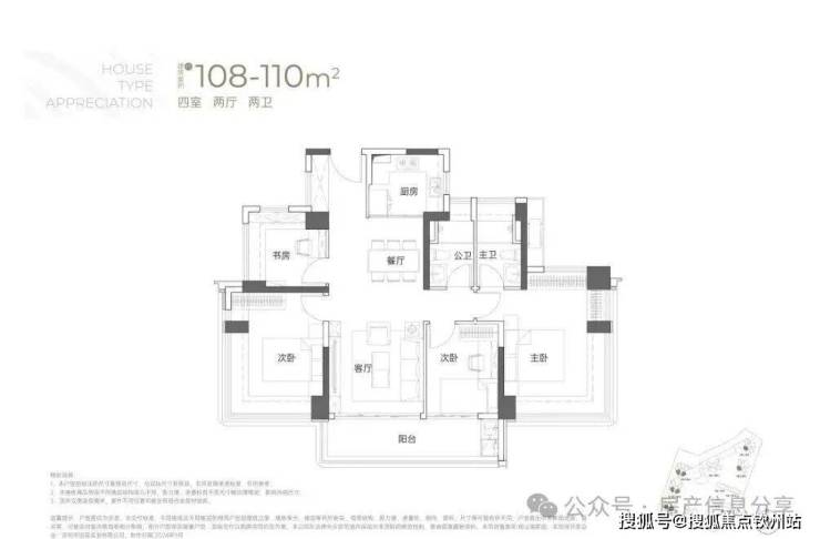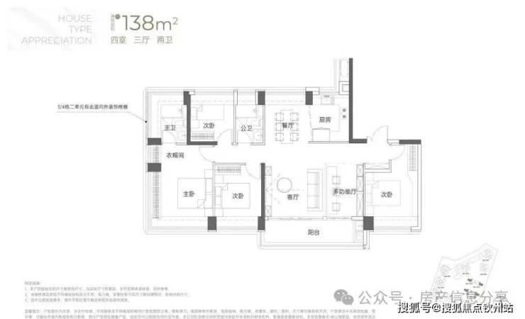 竖庭格局,西南向,基本居住功能与建面约108-110㎡4房2卫一致,但格局不一样,从目前公布的户型图上看,主要是主卧空间有了更大的提升,比如可以放更大一点的衣柜。但从位置上看,它所在的楼栋更靠近主干道,会有噪音影响。